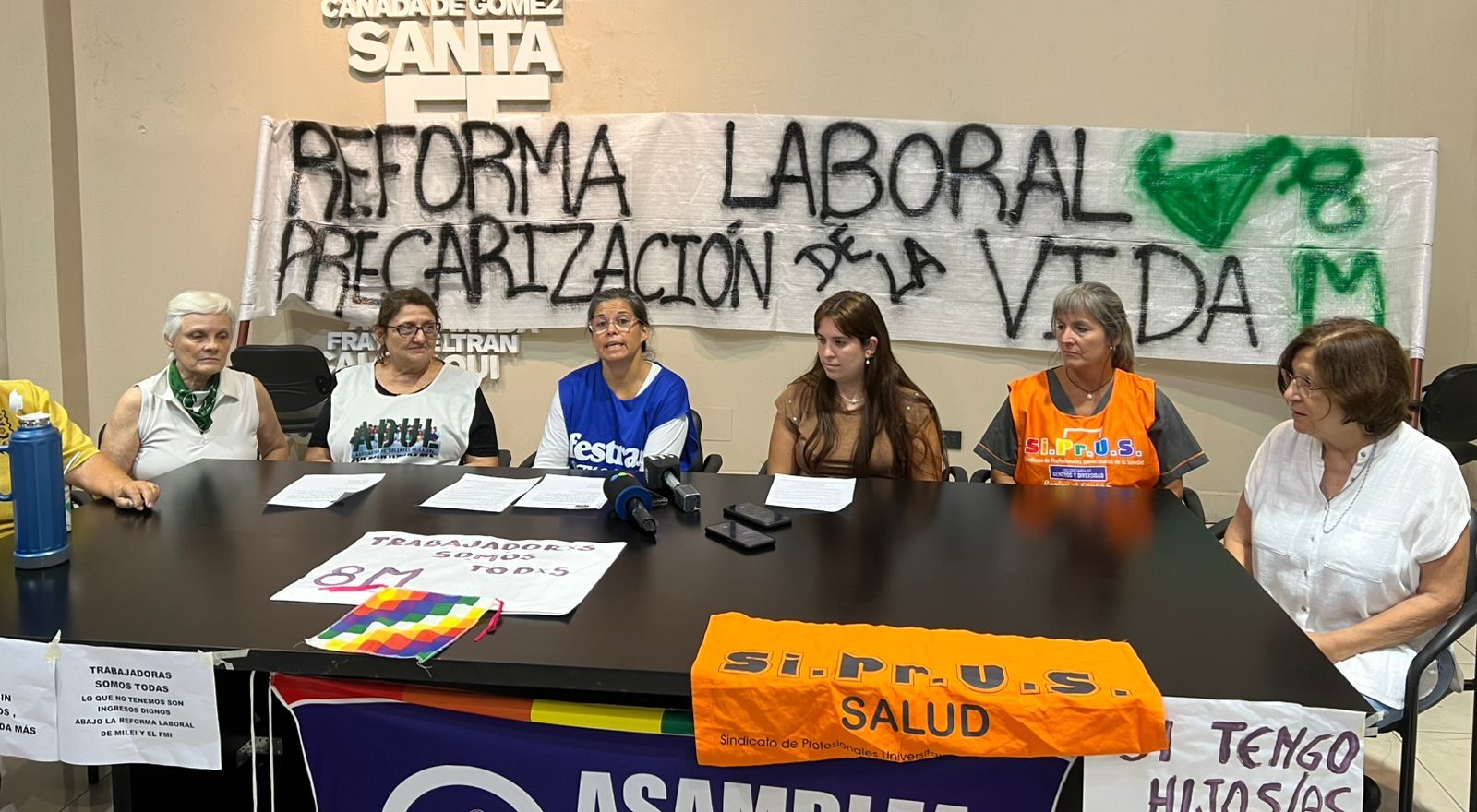 Durante la rueda de prensa, las referentes expresaron su fuerte rechazo a la reforma laboral vigente. “Afecta nuestras vidas cotidianas y laborales. Las mujeres somos las más perjudicadas por las tareas de cuidado que se nos asignan históricamente”, señalaron.