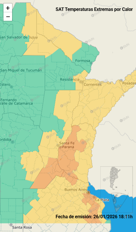 El Servicios Meteorológico Nacional (SMN) renovó las alertas para la provincia de Santa Fe por las temperaturas extremas que se pronostican para los próximos días.