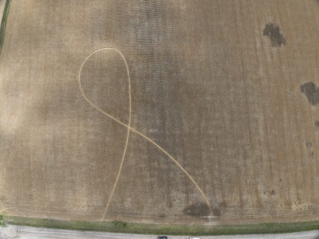 La primera impresión apuntaba a una moto o algún vehículo liviano atravesando el cultivo. Pero al analizar el lugar de cerca, todo cambió. La marca tenía 40 centímetros de ancho, curvaturas perfectas y un aplastamiento uniforme, como si una única rueda —más ancha que cualquier moto disponible en la zona— hubiera recorrido el dibujo sin desviarse ni un milímetro.