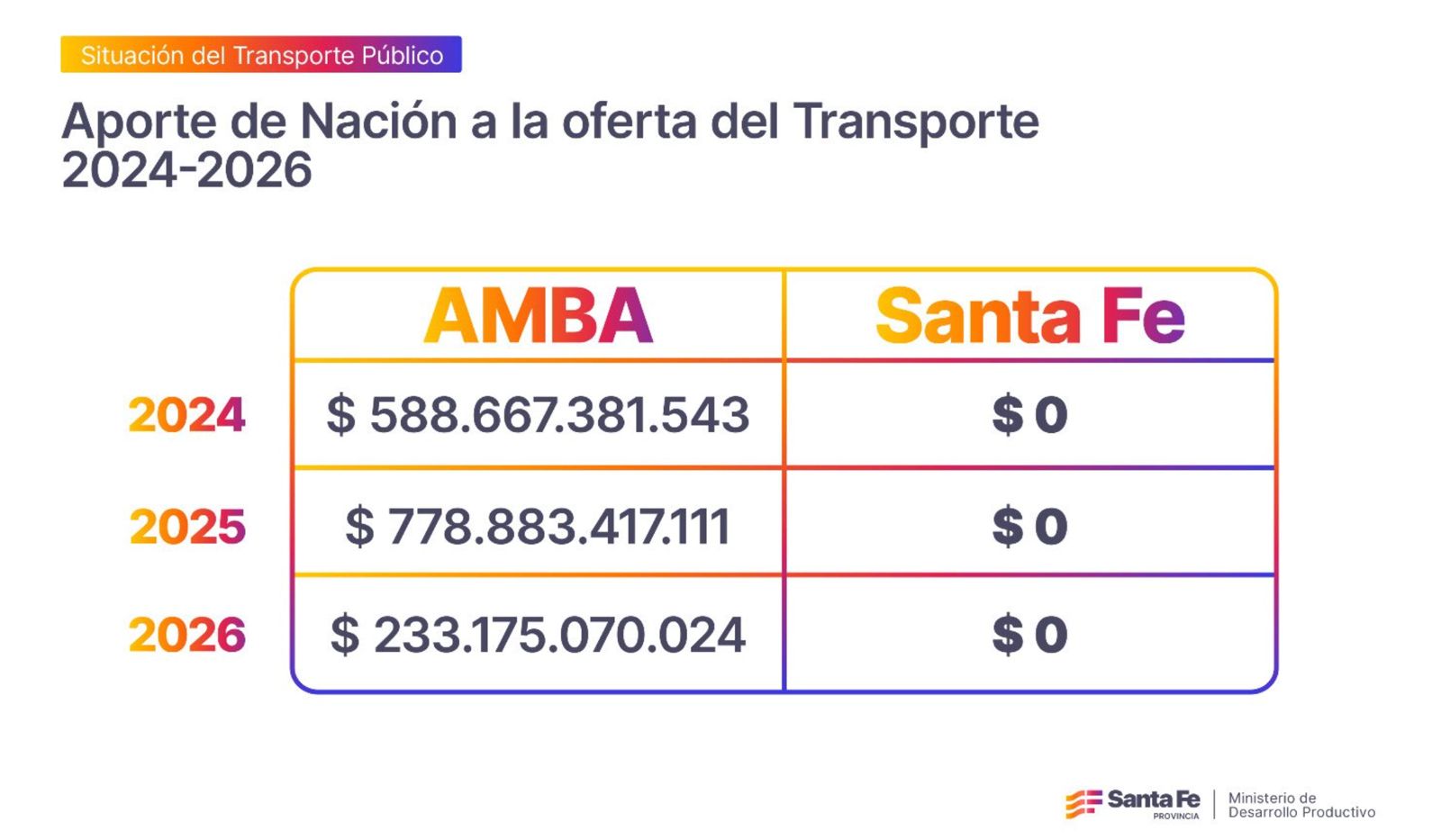 Según el ministerio de Desarrollo Productivo, Santa Fe aporta $193 mil millones para sostener el sistema. El ministro Gustavo Puccini señaló que Nación “nos da la espalda” y distribuye los aportes de manera desigual. “Genera ciudadanos de primera que viven cerca del Obelisco, y ciudadanos de segunda que estamos en el interior, produciendo” sostuvo el funcionario.