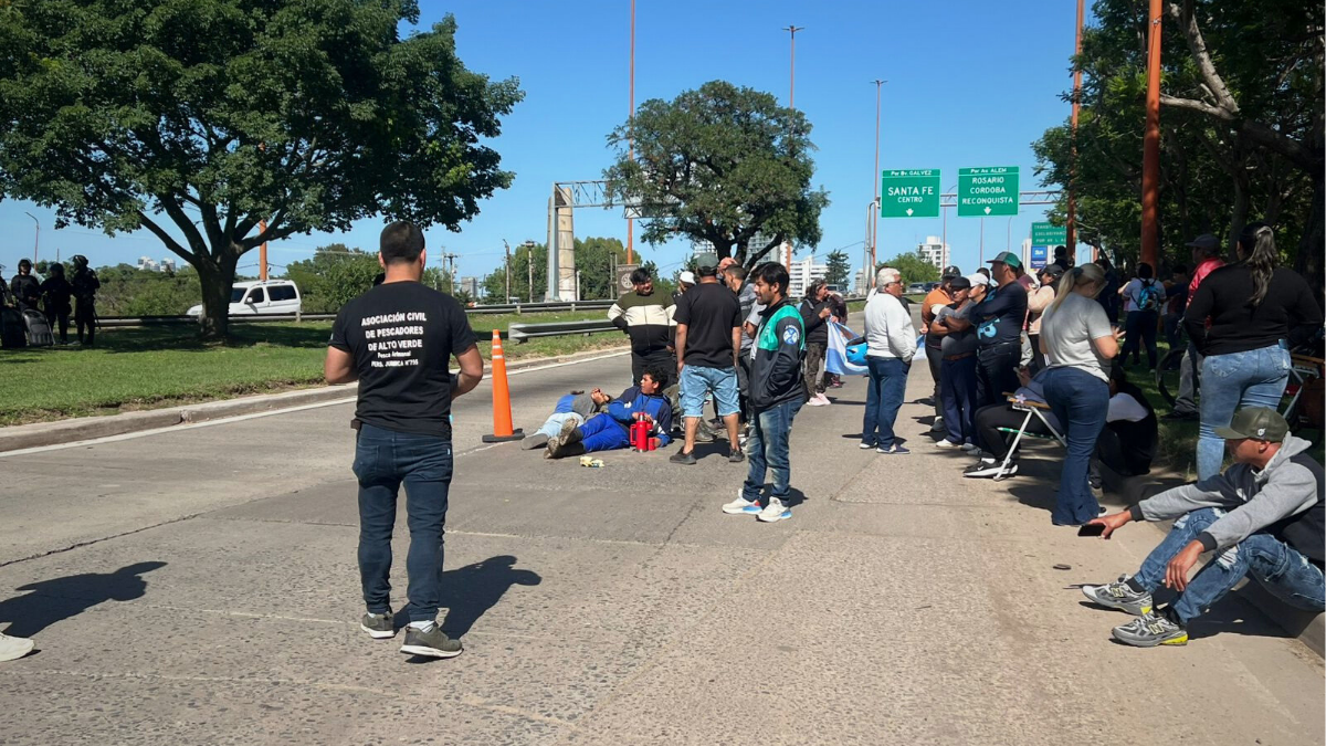 Pescadores de Santa Fe se concentran en el acceso a la ciudad de Santa Fe, por la ruta nacional 168, luego de que fuera postergada una reunión con el ministerio de Medio Ambiente y Cambio Climático.