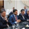 Del encuentro participaron los ministros de Obras Públicas, Lisandro Enrico, y de Educación, José Goity; los secretarios general de Gobernación, Juan Cruz Cándido; de Tecnología para la Gestión, Ignacio Tabares; de Comunicación, Luis Persello; y Legal y Técnica, Julia Tornero; y el subsecretario de Vínculos Estratégicos, Martín Pullaro.