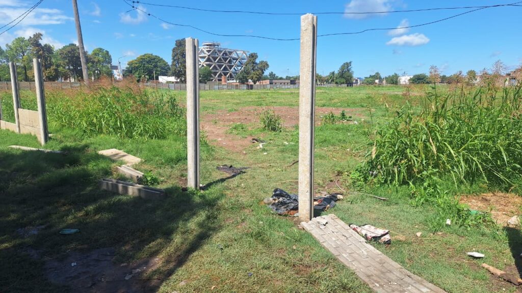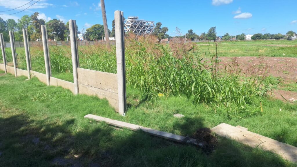 Remarcó que el cerramiento se está realizando con losas premoldeados de 2,25 de largo, pero que los ladrones llegan con mazas, rompen y dejan todo tirado. “Rompen y se llevan losetas supuestamente para hacer sus casas” añadió.