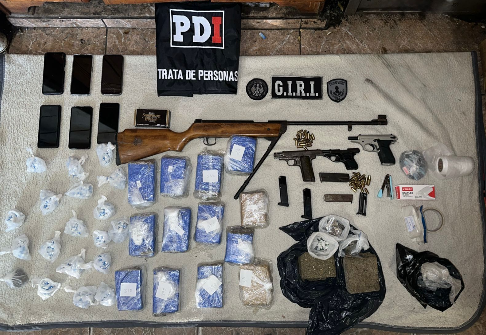 Personal de la Agencia de Investigaciones sobre Trata de Personas y Violencia de Género de la PDI llevó adelante un procedimiento en el cual se incautaron 567 envoltorios de cocaína con un pesaje total de 210 gramos y 16 ladrillos de marihuana por un peso de 6,100 kilogramos.