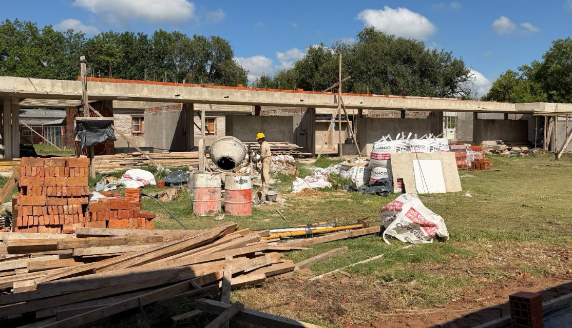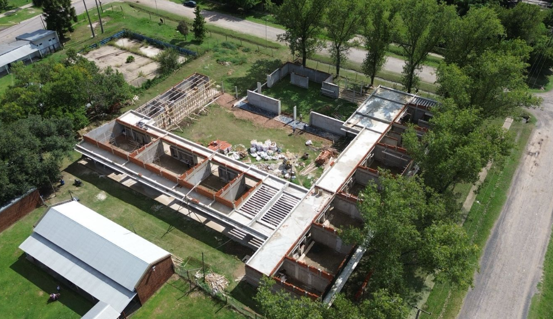 Actualmente, la empresa Capaze SRL está desarrollando tareas para la ejecución de la estructura de hormigón en el sector de galerías, mampostería y aplicación de revoques y contrapisos de las futuras aulas.
