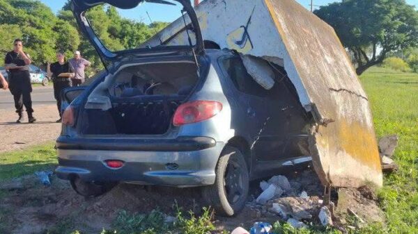 El siniestro tuvo lugar este lunes y se investigan las razones por las cuales el auto terminó destruyendo la estructura de ladrillos y cemento.